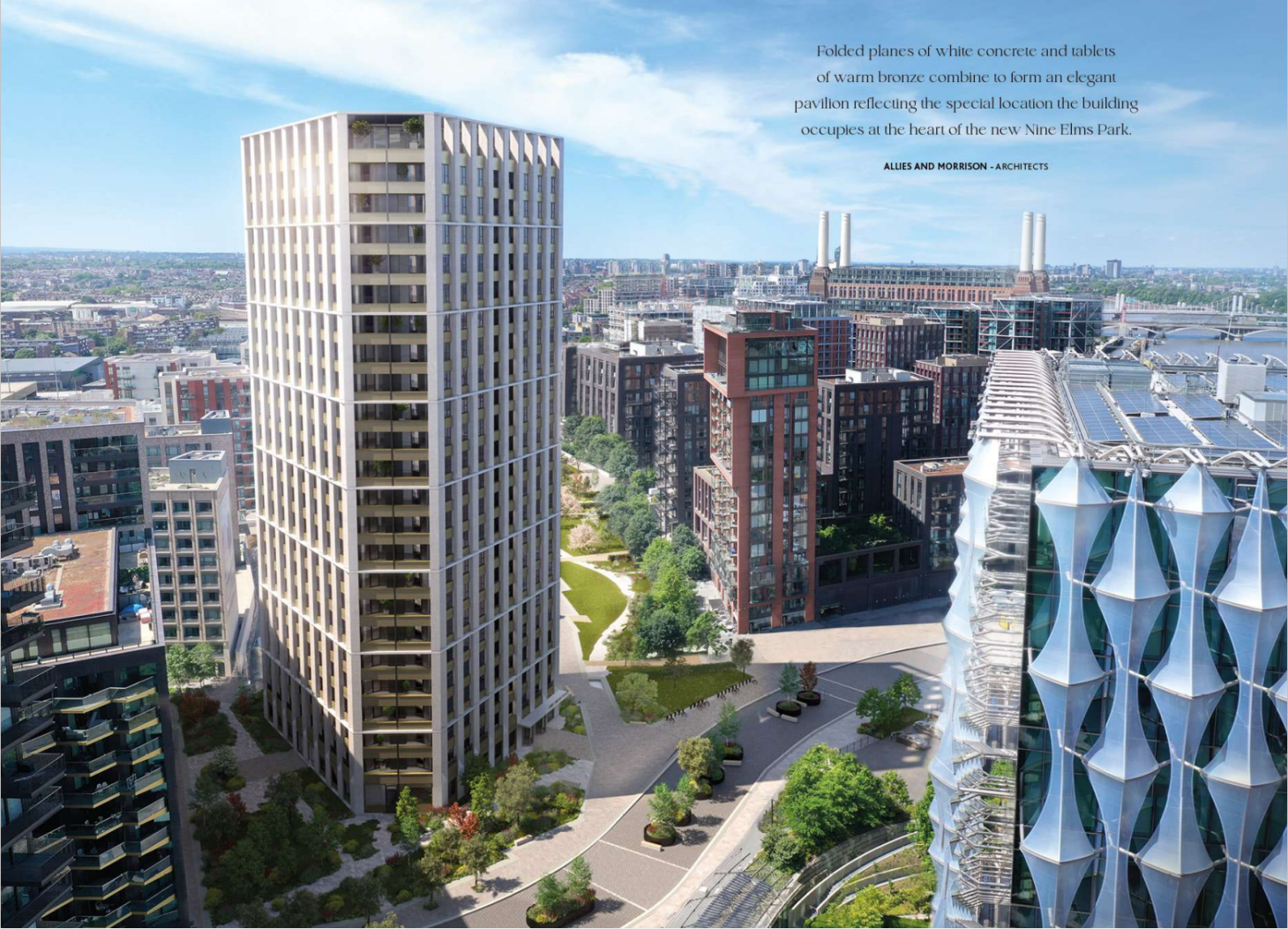 九榆樹花園計畫靠近泰晤士河而建,放眼北望,可觀賞泰晤士河和倫敦美景。建築西面是美麗的新九榆樹公園(Nine Elms Park)。