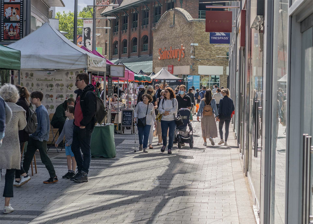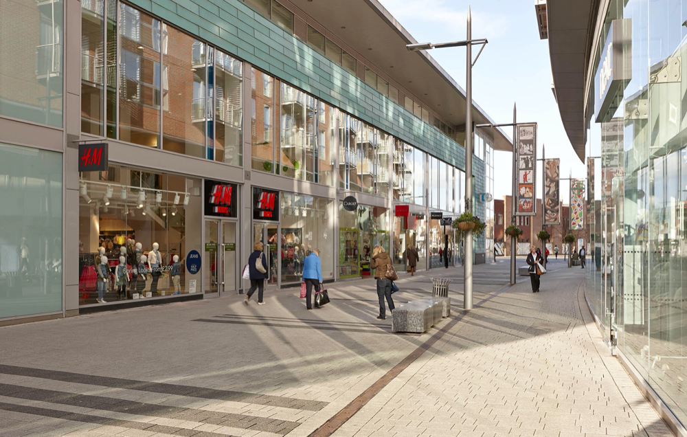 從專案出發,步行可前往小鎮的購物商場The Heart,這裡有五十多家商店、餐廳、咖啡廳以及電影院。