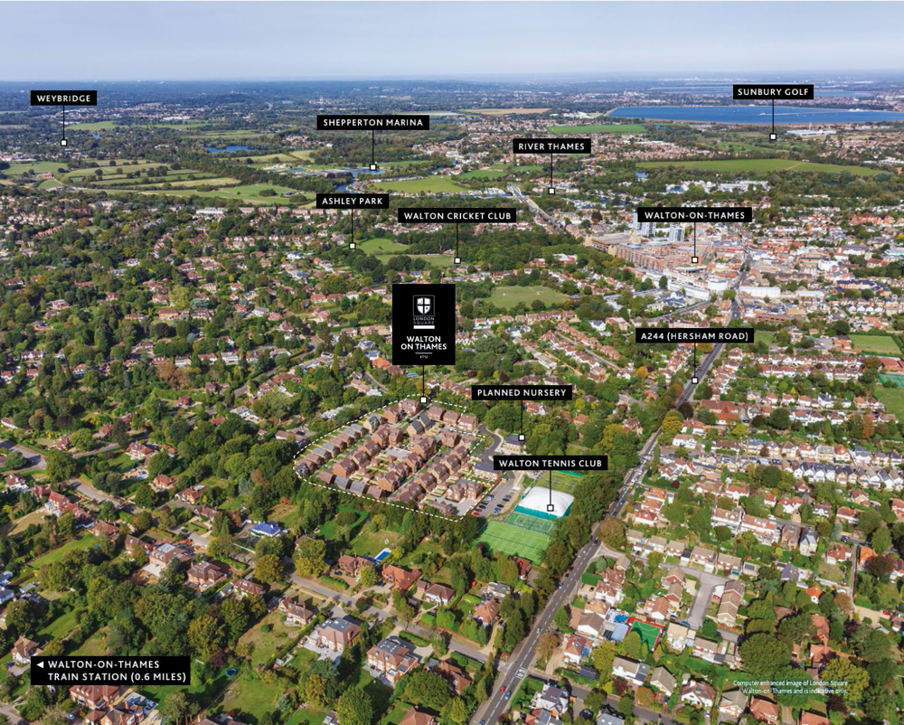 倫敦別墅專案開發商London Square打造了擁有古典紅磚風格的別墅專案沃頓莊園Walton-on-Thames,坐落於私人住宅區Ashley Park 。項目佔地 2 英畝多,位於 Stompond Lane 上,步行可抵達 Walton-on-Thames 火車站。