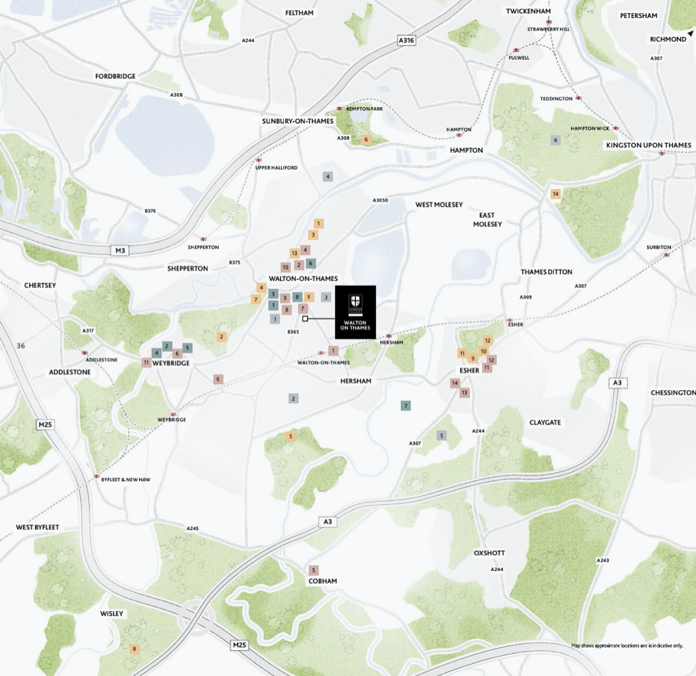 小鎮距離倫敦市區不遠,從小鎮上的火車站出發,半小時可以抵達倫敦市區,小鎮靠近泰晤士河,擁有大片綠地公園,是薩裡郡美麗的小鎮之一。