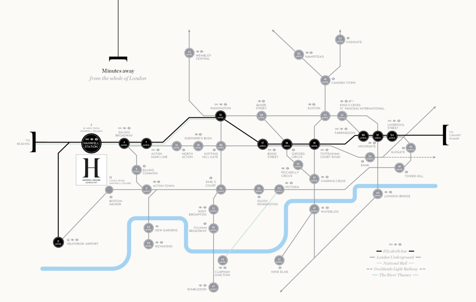 步行就可到達地鐵站,伊利沙伯女王線穿過這個區域。該區域多達五個站點,可以到達倫敦各個區域。正因為如此,該項目會成為該線路上房價受益的行政區之一,擁有著可觀的發展潛力。