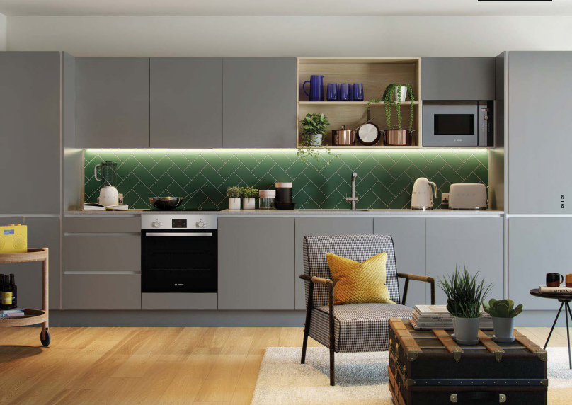 項目包含Gabriel Court、Johanna Court兩棟大樓,設計格局方正且採光優越,戶型涵蓋單間、一居室、兩居室,均配有獨特景觀落地窗及私人戶外空間,極適合自住或投資。廚房為集成定制設計,所有家電均有專屬擺放空間,中央的綠色設計與社區外綠意呼應,為廚房增添生機。房間設計同樣注重光線佈局。