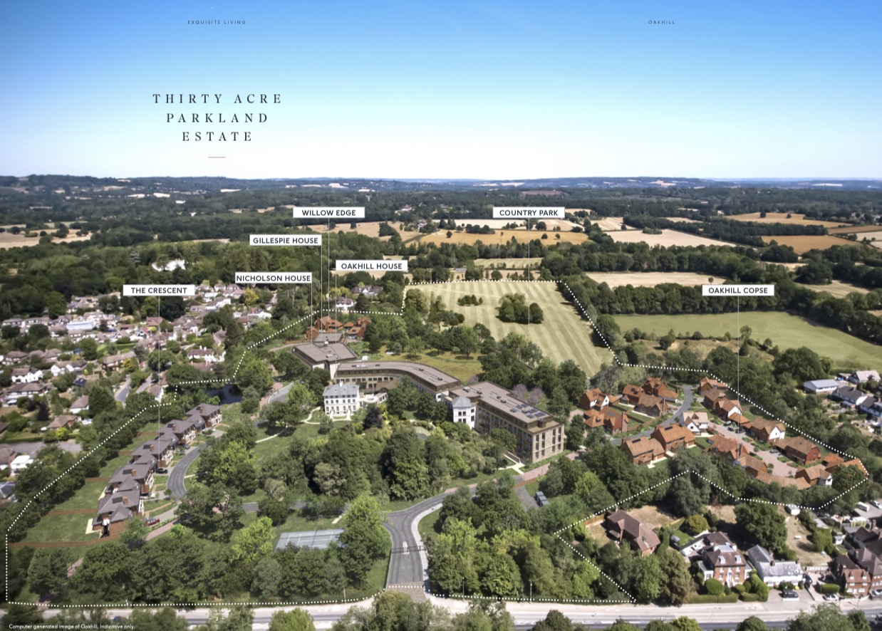 整個小區占地30英畝,擁有13英畝的田園風光。社區內共建有166套住宅,其中包括139套公寓和27套別墅。所有住宅均為精裝修,每套都配有車位。小區低密度開發,並且保留了一座二級保護的老建築,曾是丘吉爾先生的牙醫診所。