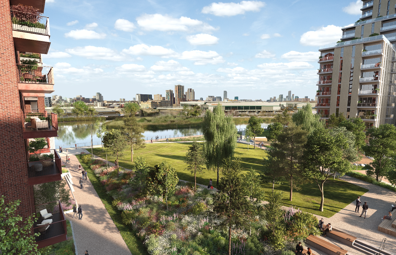 Poplar Riverside位於東倫敦2/3區,靠近金絲雀碼頭及坎寧鎮。建案毗鄰利河River Lea,佔地共20英畝,超過一半的用地將規劃成綠地空間,包含一座佔地2.5英畝的水岸公園、遊憩區以及河濱步道。