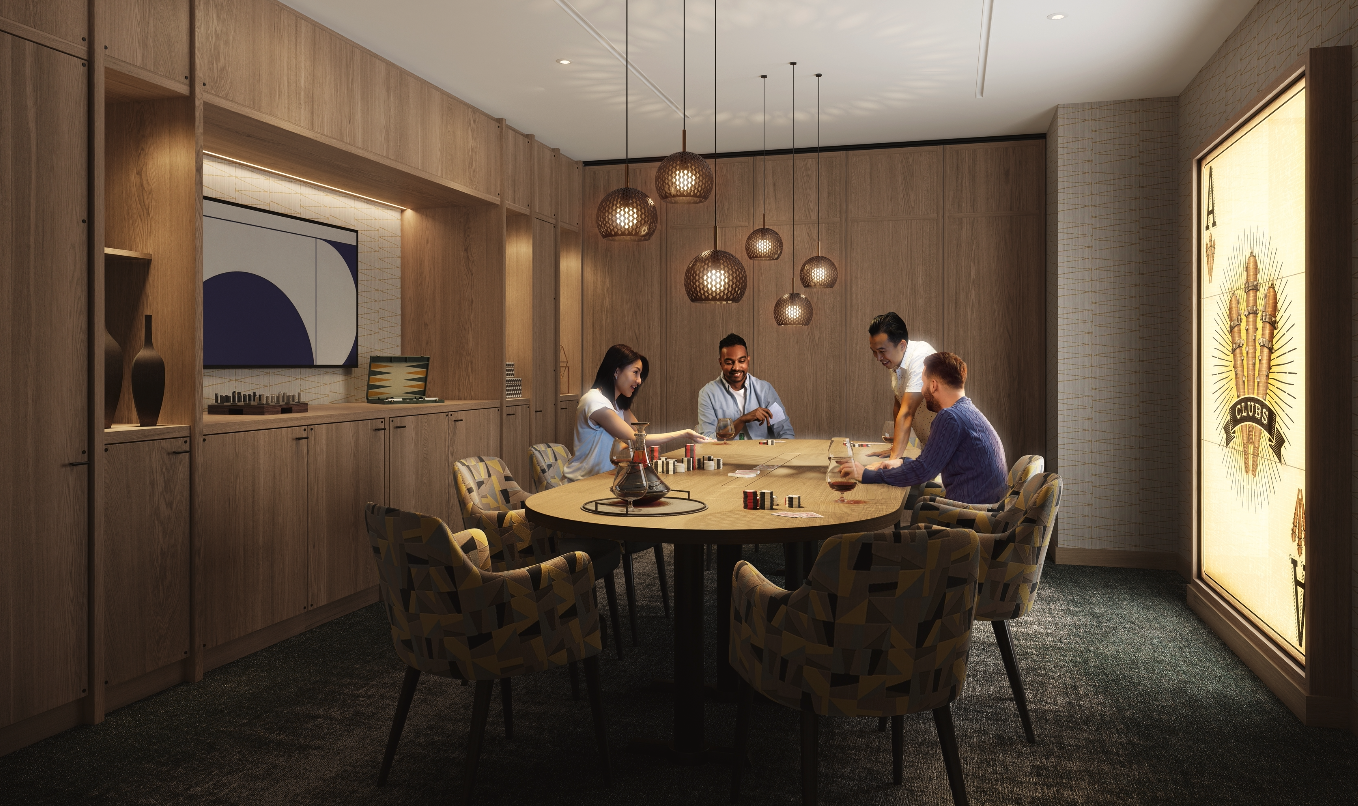 公共設施包含游泳池、桑拿、蒸氣室、大型共享辦公空間、私人餐廳、酒吧、戲院及遊戲室。