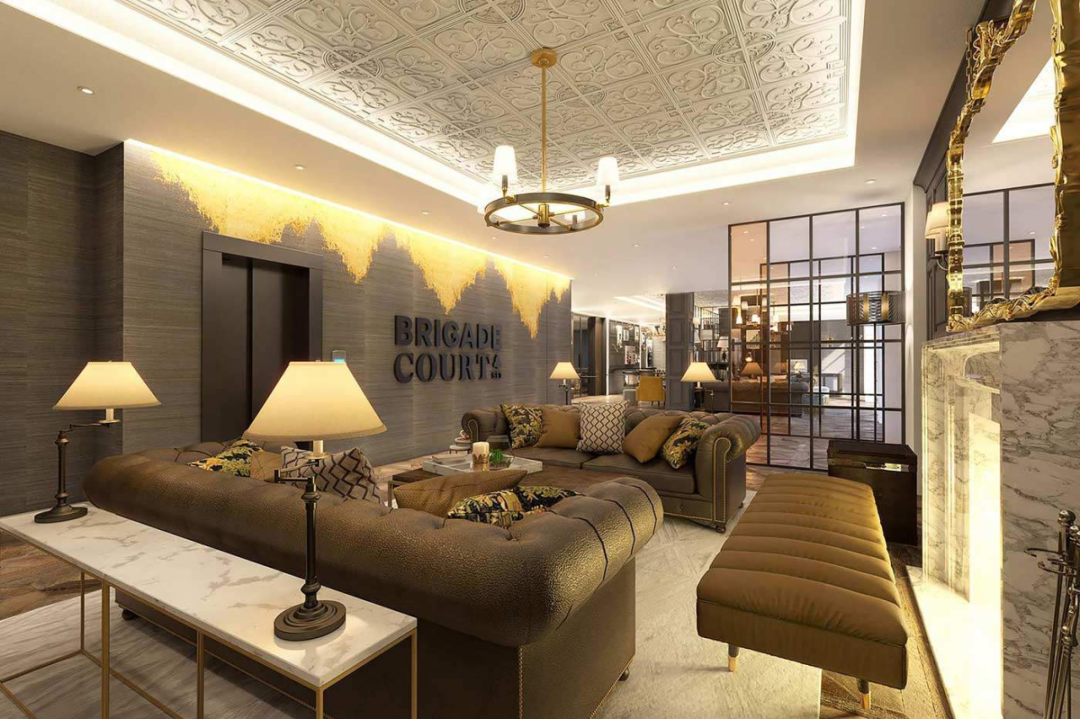 Brigade Court 提供高標準精裝修,致力於優美,舒適的居家體驗:寬敞的客廳,兩面落地窗採光,牆面地面配色高級。臥室裝潢典雅,彰顯風格與品質。
