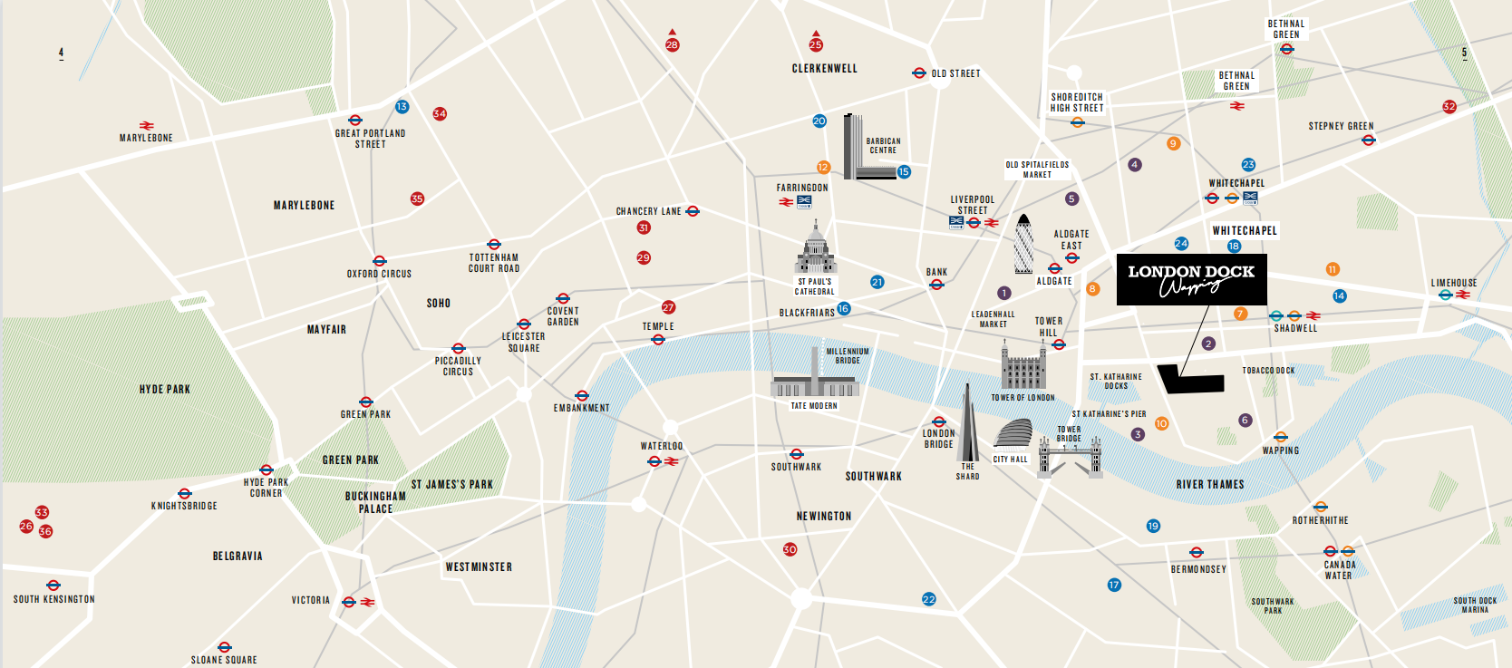 London Dock佔地15英畝, 總規劃預計1800套公寓。工程50%為開放式空間,包括噴泉廣場以及水上花園。二級歷史保護的舊倉庫改造成315公尺長的零售商業空間。目前已經有369戶入住。搭配完善的會所,優美的生活環境吸引了許多周邊工作的金領在此生活。