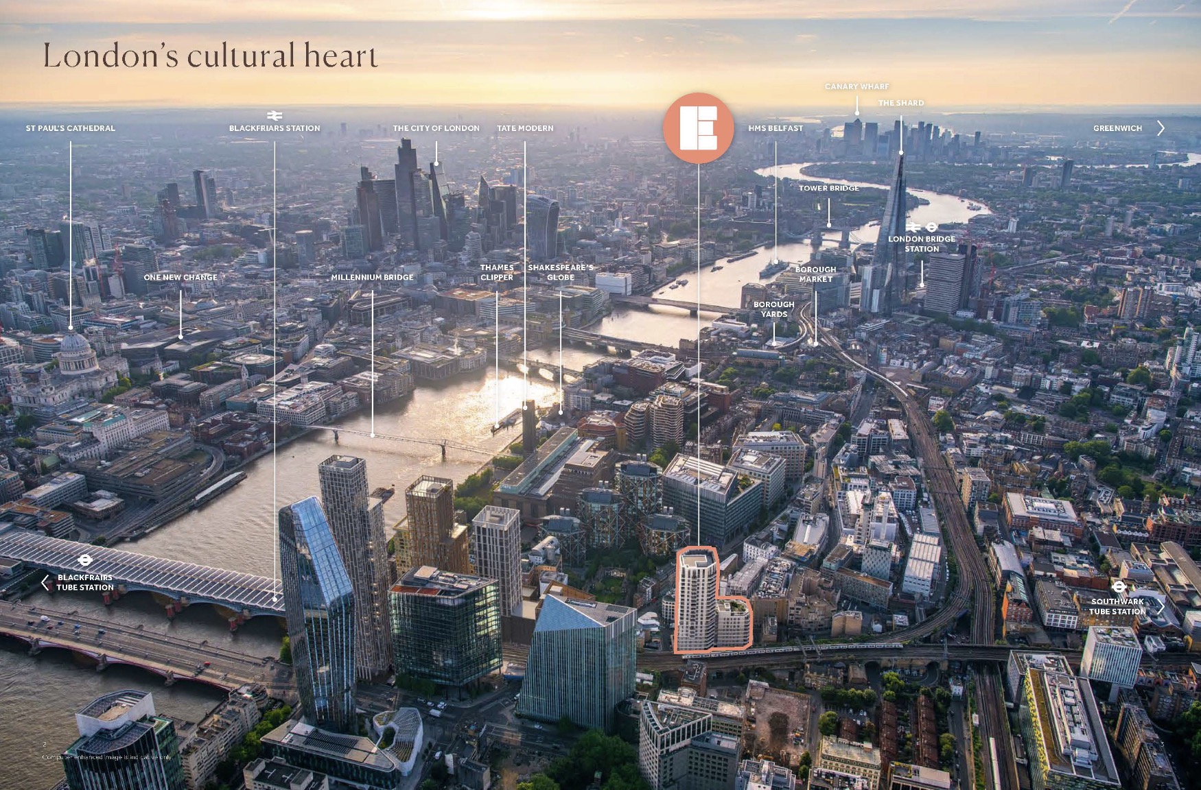 東面鄰近泰特現代美術館、Borough Market、The Shard(碎片大廈)、莎士比亞環球劇院等文化地標。