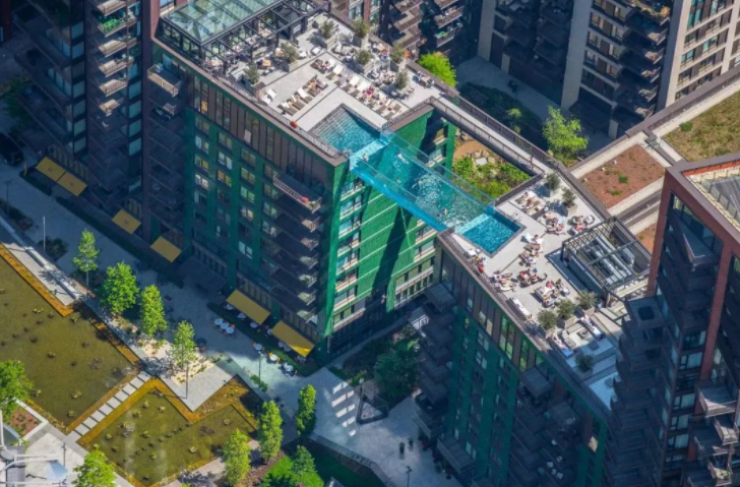 天際泳池(Sky Pool)與天際陽台(Sky Deck)為項目最大特色之一。這座懸浮於兩棟建築之間的透明泳池,高達 35 米、長 25 米、重達 50 噸,如水晶般通透,游泳時可飽覽倫敦南北岸壯麗景致,成為城市中獨一無二的風景線。