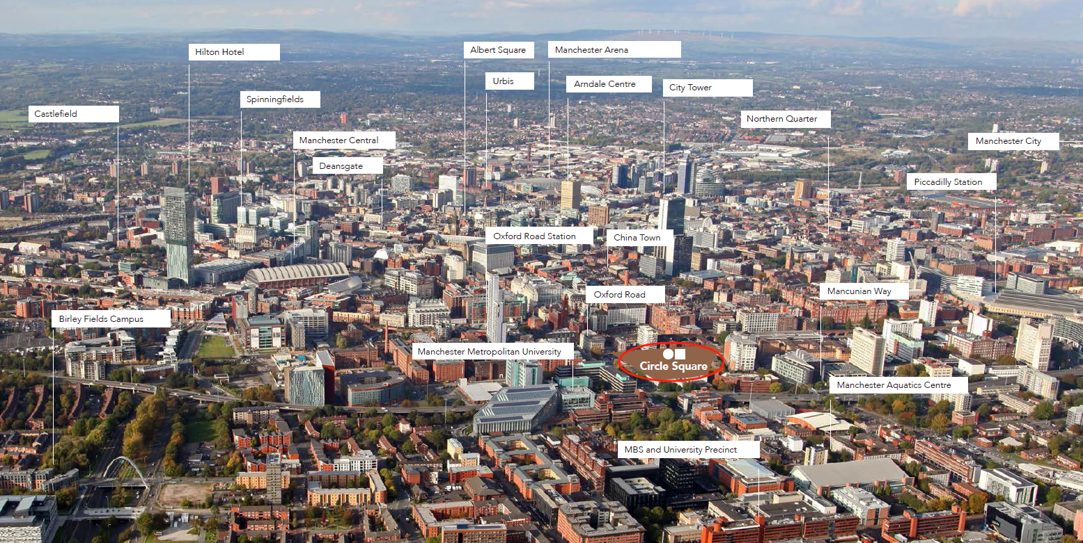 項目位於曼徹斯特主幹道Oxford Road,鄰近曼徹斯特大學北校區,曼徹斯特都會大學、北方皇家音樂學院僅數百米之遙,步行即達。